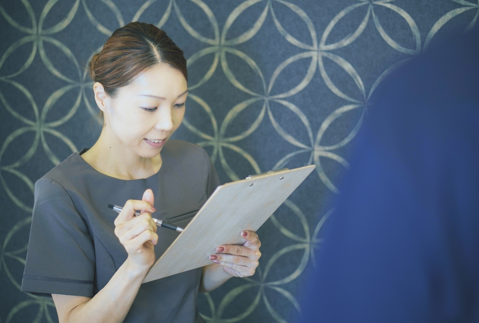 お体の状態の確認を行い、施術の流れや冷却の入り方などご説明します。
